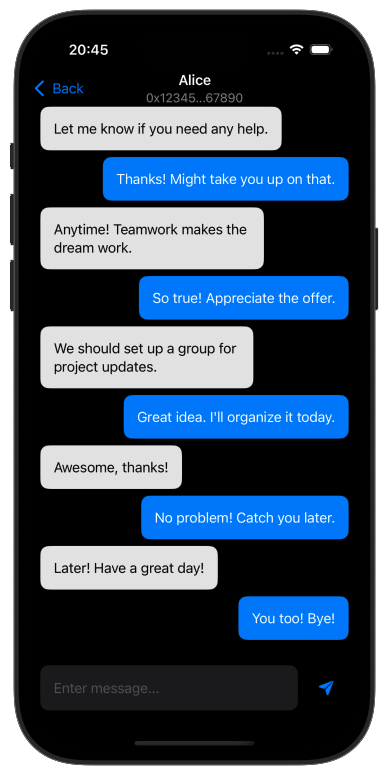 Messages sent through the blockchain are recorded immutably, making data manipulation impossible. This ensures that users can trust their messages are authentic and protected from interference.